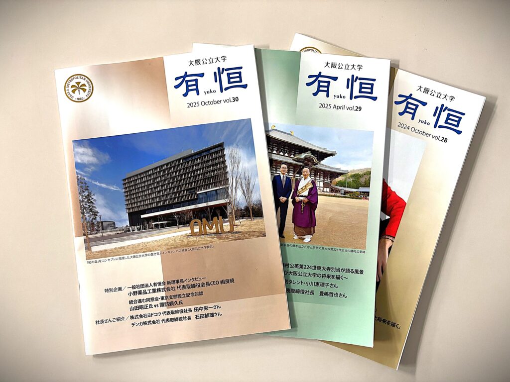 大阪公立大学同窓会報誌「有恒」はA4版オールカラー、50から60ページ。4月、10月の年2回発行。有恒会、理学部同窓会、生活科学部同窓会の会員に配布しています。