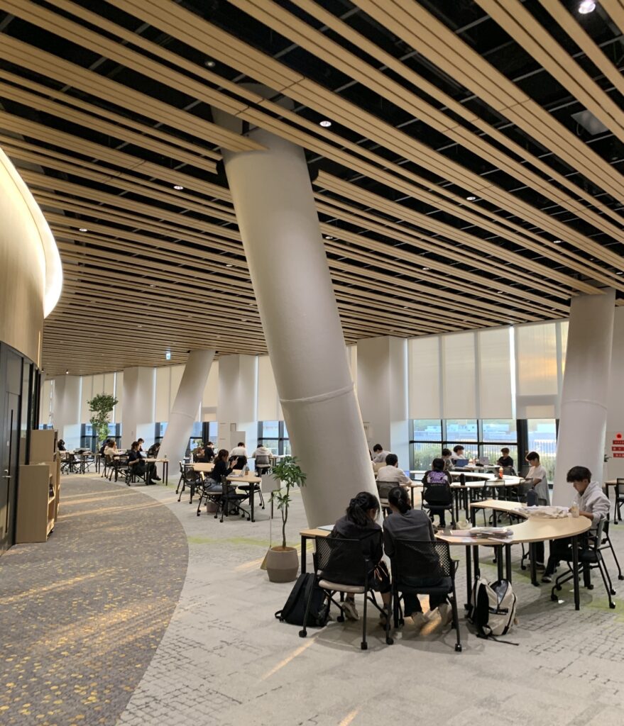 図書館の他にも、グループ学習室や音出し可能な部屋、自習室、さらに12階に「SMBCスカイラウンジ」という談話、交流できるスペースがあったりして、勉強や学生同士の交流に非常に向いている環境だなと思います!