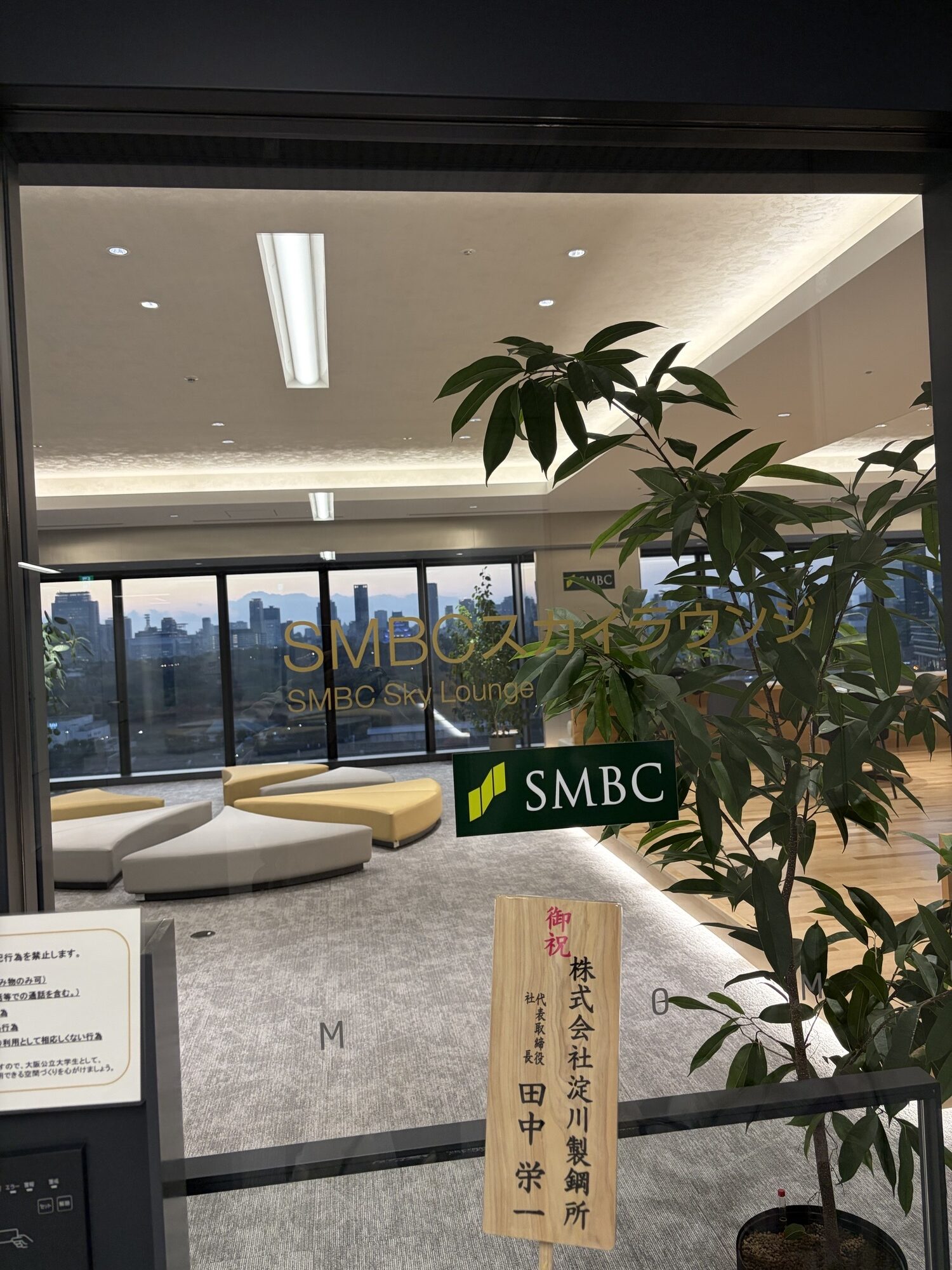 写真は12階の「SMBCスカイラウンジ」です!少しだけ中が見えますが、リラックスできそうな空間ですね! 👀